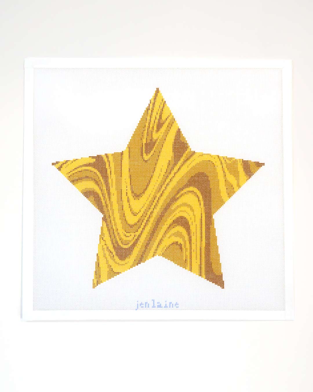 A Marbled Star for your Holiday Tree Top.This marbled star canvas in tones of gold would look gorgeous stitched up in silks and specialty threads to adorn the top of your holiday tree!