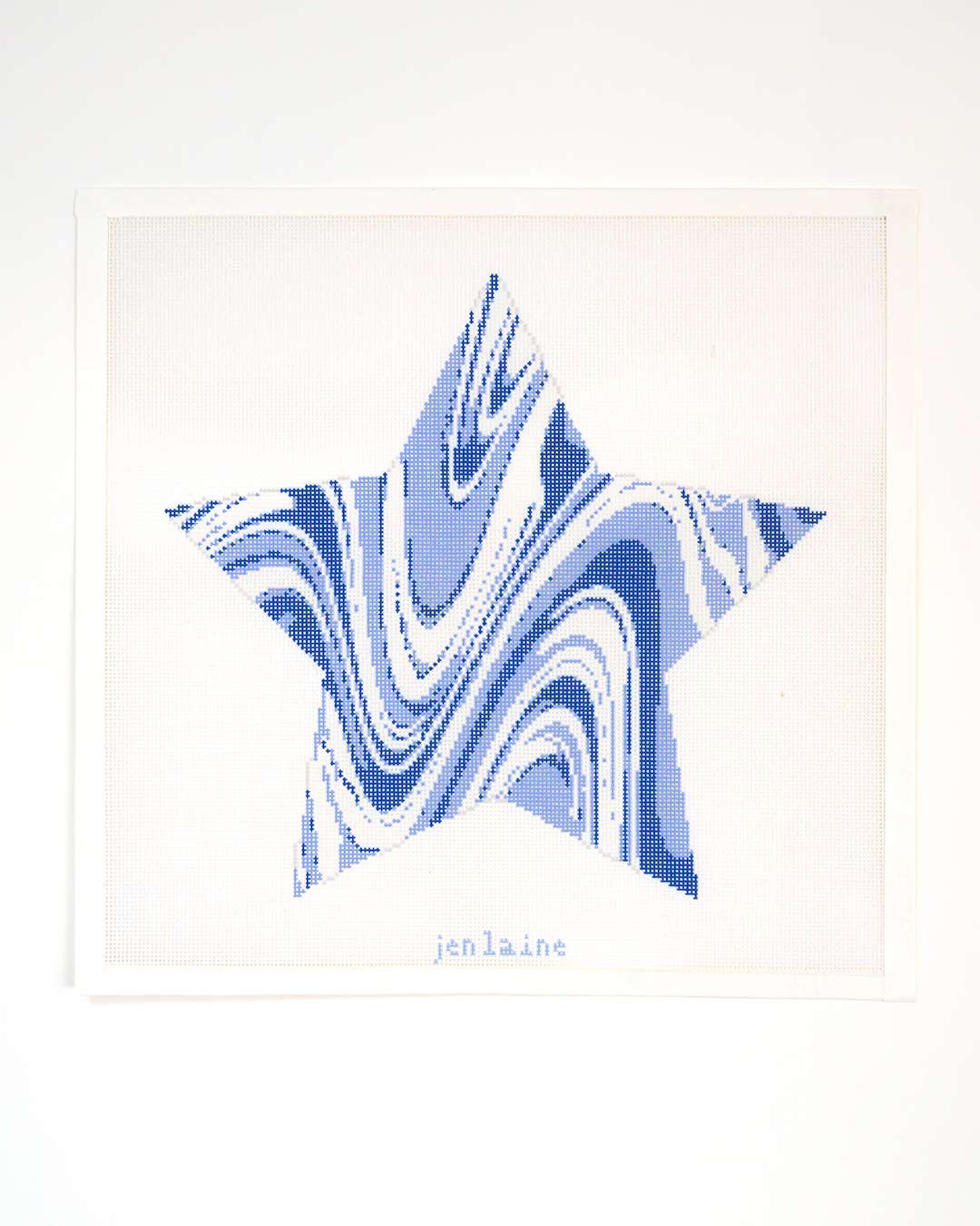 A Marbled Star for your Holiday Tree Top! This blue and white marbled star canvas look would look gorgeous stitched up in silks to adorn the top of your holiday tree.